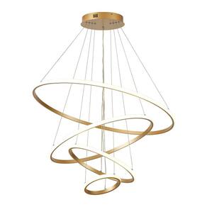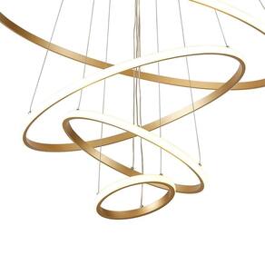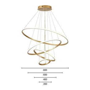 Especificações gerais do produtoVoltagem: BivoltDimensões AxLxP mm : Círculo 1: 800mm; Círculo 2: 600mm; Círculo 3: 400mm; Círculo 4: 200mm ; Altura: 3000mmCor: DouradoMaterial: Alumínio e MetalGarantia: 1 ano junto ao fabricanteReferência: LP-404AFluxo Luminoso: 6020 lúmensComprimento dos Cabos: Cabo ajustável, máximo 300 cmPotência: 86WLocal de Uso: InternoModelo/Tecnologia: LED EmbutidoTemperatura da Cor: 3000K - Branco QuenteO que acompanha o produto1 Lustre Pendente Marca: Não Informado