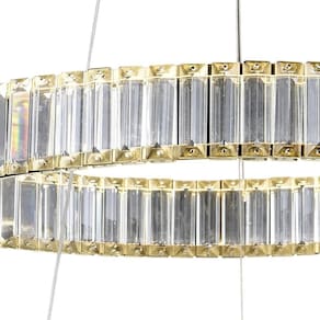 Especificaçõesvoltagem: BivoltDimensões AxLxP mm : Círculo 1:600mm; Círculo 400mm; Altura: 900mmCor: DouradoMaterial: Metal e CristalGarantia: 1 ano junto ao fabricanteReferência:LTP-019Fluxo Luminoso: 4400 lúmensComprimento dos Cabos: Cabo ajustável, aproximadamente 100cmPotência: 55WLocal de Uso: InternoModelo/Tecnologia: LED EmbutidoTemperatura da Cor: Ajustável: 3000K luz amarela , 4500K luz neutra , 6500K luz branca Itens inclusos:1 Lustre Pendente