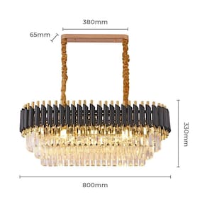 Especificações gerais do produto:Voltagem: BivoltDimensões AxLxP mm : 330x800x300Cor: PretoMaterial: Alumínio, Cristal e MetalGarantia: 1 ano junto ao fabricanteReferência: LTR-013PComprimento dos Cabos: Cabo ajustável, aproximadamente 100cmLâmpada Inclusa: NãoLocal de Uso: InternoNúmero de Lâmpadas: 8Potência Máxima por soquete : 40WSoquete: E14O que acompanha o produto:1 Lustre Pendente Marca: Não Informado