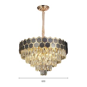 Especificações gerais do produto Voltagem: BivoltDimensões AxLxP (mm): 1150x600x600Cor: DouradoMaterial: Metal e CristalGarantia: 1 ano junto ao fabricanteReferência: LTR-017Comprimento dos Cabos: Cabo ajustável, aproximadamente 100cmLâmpada Inclusa: NãoLocal de Uso: InternoNúmero de Lâmpadas: 12Potência Máxima (por soquete): 40WSoquete: E14 O que acompanha o produto 1 Lustre Pendente