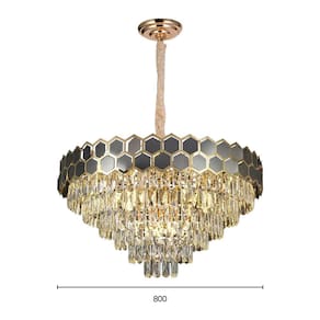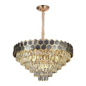 Especificações gerais do produto Voltagem: BivoltDimensões AxLxP (mm): 1200x800x800Cor: DouradoMaterial: Metal e CristalGarantia: 1 ano junto ao fabricanteReferência: LTR-018Comprimento dos Cabos: Cabo ajustável, aproximadamente 100cmLâmpada Inclusa: NãoLocal de Uso: InternoNúmero de Lâmpadas: 16Potência Máxima (por soquete): 40WSoquete: E14 O que acompanha o produto 1 Lustre Pendente
