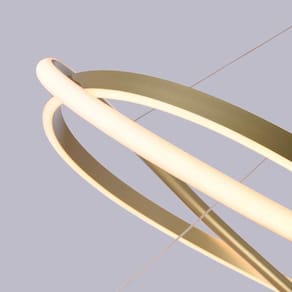 Lustre Pendente Nordecor Euni Odi 2878 Dourado Fosco Led Bivolt Especificações Voltagem: BivoltDimensões AxLxP (mm): De cima para baixo: Círculo: 80cm; Círculo: 60cmCor: Dourado FoscoMaterial: Alumínio e SiliconeGarantia: 1 ano junto ao fabricanteReferência: 2877Fluxo Luminoso: 10125 lúmensComprimento dos Cabos: Cabo ajustável, máximo 500 cmPotência: 135WLocal de Uso: InternoModelo/Tecnologia:LED EmbutidoTemperatura da Cor: 3000K - Branco QuenteÂngulo de Abertura: 120Grau de Proteção: IP 20Frequência: 50/60 Hz Itens inclusos: 1 Lustre Pendente