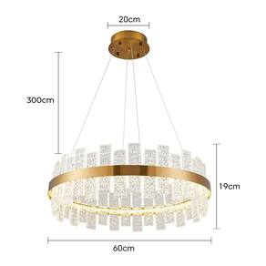 Lustre Pendente Nordecor Lowy 2761 60cm Dourado Brilho Led Bivolt - Voltagem: Bivolt- Dimensões AxLxP (mm): 3000x600- Cor: Dourado Brilho- Material: Metal e Cristal- Garantia: 1 ano junto ao fabricante- Referência: 2761- Fluxo Luminoso: 3200 lúmens- Comprimento dos Cabos: Cabo ajustável, máximo 300 cm- Potência: 40W- Local de Uso: Interno- Modelo/Tecnologia: LED Embutido- Temperatura da Cor: 3000K - Branco Quente- Ângulo de Abertura: 120- Grau de Proteção: IP 20 O que vem na caixa:1 Lustre Pendente
