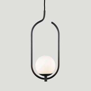 Lustre Pendente On Clip - Preto Com Globo De Vidro Branco