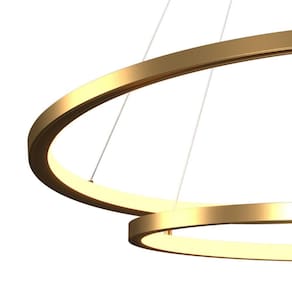 Lustre Pendente Orluce Tabat Or1790 Com 2 Aros 60/40cm Dourado Led Bivolt Características Gerais do Produto: - Dimensões AxLxP (mm): Círculo 1: 60cm; Círculo 2: 40cm; Altura de ambos: 2cm; - Referência: OR1790 - Cor: Dourado - Garantia: 1 ano junto ao fabricante - Grau de Proteção: IP 20 - Local de Uso: Interno - Material: Acrílico; Metal - Potência: 53W - Modelo/Tecnologia: LED Embutido - Temperatura da Cor: 2700K Branco Quente Acompanha o produto: - 1 Lustre Pendente - Manual de Instalação