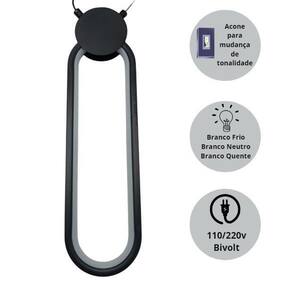 Lustre Pendente Oval Led Moderno 3 em 1 - Preto Adicione um toque de sofisticação e modernidade ao seu ambiente com o Lustre Pendente LED Oval 3 em 1 na cor Preto. Seu design elegante e inovador, com acabamento dourado, é ideal para salas de jantar, cozinhas, escritórios ou qualquer espaço que precise de iluminação de alta qualidade e um visual deslumbrante. Características: - Design sofisticado e moderno: Formato oval que harmoniza perfeitamente com diferentes estilos de decoração; - Tecnologia LED integrada: Iluminação eficiente e econômica, proporcionando um brilho suave e agradável sem sobrecarregar sua conta de energia; - Funcionalidade 3 em 1: Possui três configurações de intensidade de luz, permitindo ajustar a iluminação conforme a necessidade e o ambiente; - Acabamento Preto: Detalhes refinados que conferem um toque de luxo e elegância; - Material durável e de alta qualidade: Produzido com materiais resistentes e de longa duabilidade; Especificações: - 3 cores de luz: Branco Neutro 4000K / Branco Quente 3000K e Branco Frio 6000K ; - Temperatura da cor: 4000K/ 3000K / 6000K; - Bivolt; - Dimensões: 52cm x 4,5cm x 12cm - Acompanha buchas, parafusos e fixador; - Peso: 500g Transforme o seu espaço com o Lustre Pendente LED Oval 3 em 1 - Preto e desfrute de um ambiente bem iluminado e com estilo único. : Conteúdo da embalagem: 01 - Lustre Pendente Oval Led Moderno 3 em 1 - Preto 02 - Buchas; 02 - Parafusos; 01 - Fixador; Marca: Não Informado