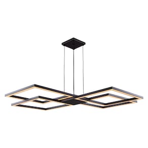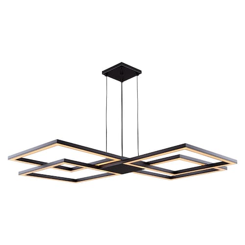 Lustre Pendente Perfil LED 96W Design Moderno Quarto Sala Escritorio Bivolt - Cor: Preto - Luz Branca Quente Amarela 3000K
