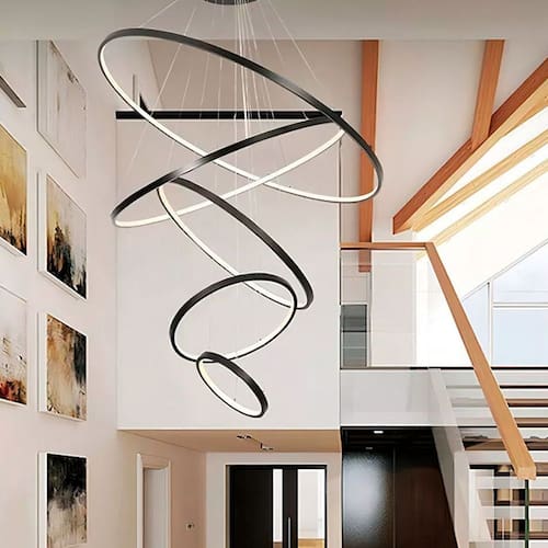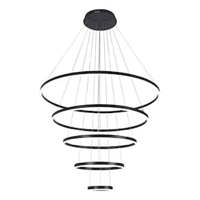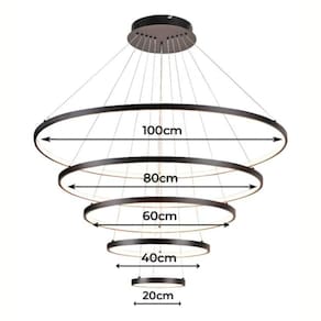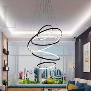 O Lustre Pendente Preto Fosco 5 Arcos LED 132W une design moderno, potência luminosa e elegância para ambientes sofisticados. Seu design simétrico com cinco arcos metálicos cria forte impacto visual e iluminação uniforme, tornando-se peça central na decoração.