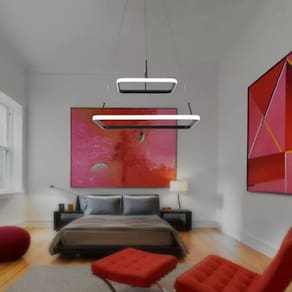 A luz quente proporciona um ambiente acolhedor, ideal para áreas de convivência. O design inovador garante distribuição uniforme da iluminação, combinando funcionalidade e estética refinada.