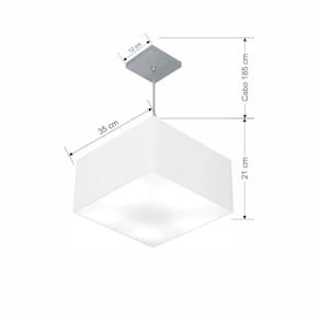 Pendente quadrado apresenta facilidade na instalação e manutenção e limpeza, além de possibilitar o ajuste da altura de acordo com suas necessidades. O que oferecem um charme único aos espaços e estão cada vez mais presentes na decoração.DimensãoCúpula em Tecido: 21x35x35cm