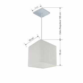 Lustre Pendente Quadrado Md-4224 Cúpula Tecido 16/16x16cm Branco