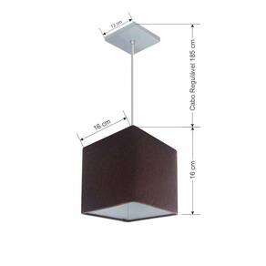 Pendente quadrado apresenta facilidade na instalação e manutenção e limpeza, além de possibilitar o ajuste da altura de acordo com suas necessidades. O que oferecem um charme único aos espaços e estão cada vez mais presentes na decoração.DimensãoCúpula em Tecido: 16x16x16cm