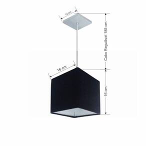 Pendente quadrado apresenta facilidade na instalação e manutenção e limpeza, além de possibilitar o ajuste da altura de acordo com suas necessidades. O que oferecem um charme único aos espaços e estão cada vez mais presentes na decoração.DimensãoCúpula em Tecido: 16x16x16cm