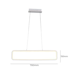 O Lustre Pendente Quality Recto 1320 LED Bivolt Branco possui dimensões de 150x700x20mm, sendo ideal para ser instalado em salas de estar, salas de jantar, quartos e escritórios. Seu grau de proteção IP 20 o torna adequado para uso interno, garantindo sua segurança e durabilidade.