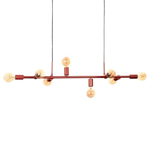 Lustre Pendente Quality Spine 1607 E27 Bivolt Cobre Características Gerais do Produto: - Dimensões AxLxP (mm): 212x165x1100 - Garantia: 1 ano junto ao fabricante - Grau de Proteção: IP 20 - Comprimento dos Cabos: Cabo ajustável, máximo 150 cm - Lâmpada Inclusa: Não - Local de Uso: Interno - Material: Metal - Número de Lâmpadas: 8 - Potência Máxima (por soquete): 40W - Soquete: E27 Acompanha o produto: - 1 Lustre Pendente - Manual de Instalação