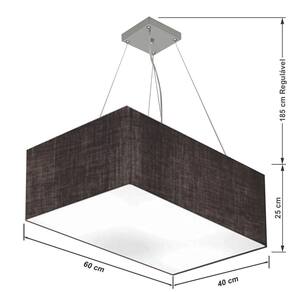 Lustre Pendente Retangular Md-4372 Cúpula em Tecido 60x40cm Preto