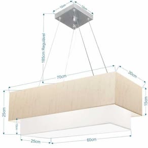 Você já deve ter reparado que os pendente retangular duplo são luminária suspensa que oferecem um charme único aos espaços e estão cada vez mais presentes na decoração. Utilizamos em nossa casa em uma mesa de jantar e só escolha a cor da cúpula em tecido que mais combine com seu ambientes.