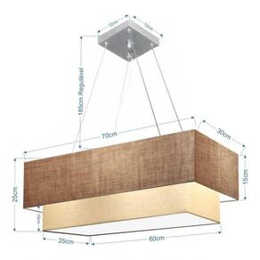 Lustre Pendente Duplo Retangular Vivare Md-4138 Cúpula em Tecido 70x30cm x 60x25cm - Bivolt