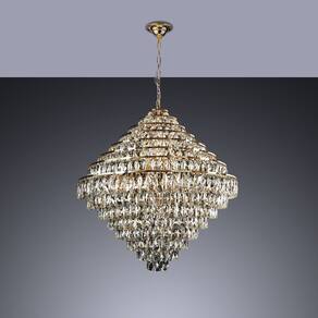 Com dimensões de 1,62m de altura total e 80cm de diâmetro, este modelo combina estrutura em aço e cúpula formada por cristais que refletem a luz de forma elegante. Seu design imponente torna o ambiente mais acolhedor e refinado.