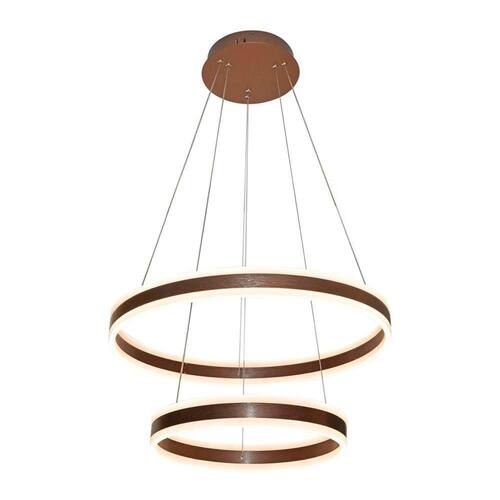 Lustre Pendente Sindora Dcd03001 Marrom Led Bivolt Especificações Gerais do Produto:Voltagem: BivoltDimensões AxLxP (mm): De cima para baixo: Círculo 1: 600mm; Círculo 2: 400mmCor: MarromMaterial: Alumínio e AcrílicoGarantia: 1 ano junto ao fabricanteReferência: DCD03001Cor Principal: MarromFluxo Luminoso: 12600 lúmensComprimento dos Cabos: Cabo ajustável, máximo 250 cmPotência: 126WLocal de Uso: InternoModelo/Tecnologia: LED EmbutidoTemperatura da Cor: 3000K - Branco Quente O que vem na caixa:1 Lustre Pendente