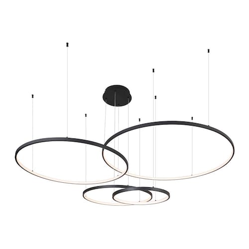Especificações Gerais do Produto: Voltagem: Bivolt Dimensões AxLxP (mm): Círculo: 1000mm; Círculo: 800mm; Círculo: 600mm; Círculo: 400mm Cor: Preto Material: Alumínio e Silicone Garantia: 1 ano junto ao fabricante Referência: QD05365 Cor Principal: Preto Fluxo Luminoso: 12180 lúmens Comprimento dos Cabos: Cabo ajustável, máximo 500 cm Potência: 174W Local de Uso: Interno Modelo/Tecnologia: LED Embutido Temperatura da Cor: 3000K - Branco Quente