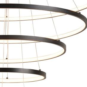 Lustre Pendente Sindora Qd05454 Preto Led Bivolt Especificações Gerais do Produto:Voltagem: BivoltDimensões AxLxP (mm): De cima para baixo: Círculo 1: 1000mm; Círculo 2: 800mm; Círculo 3: 600mm; Círculo 4:400mm; Círculo 5: 200mmCor: PretoMaterial: Alumínio e SiliconeGarantia: 1 ano junto ao fabricanteReferência: QD05454Cor Principal: PretoFluxo Luminoso: 18800 lúmensComprimento dos Cabos: Cabo ajustável, máximo 500 cmPotência: 188WLocal de Uso: InternoModelo/Tecnologia: LED EmbutidoTemperatura da Cor: 3000K - Branco Quente O que vem na caixa:1 Lustre Pendente
