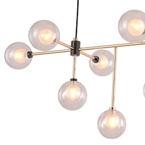 Lustre Pendente Startec Manhattan Dourado G9 Bivolt Lustre pendente Sputnik Manhattan O pendente Manhattan é deslumbrante, seu corpo em aço é resistente e elegante, o pendente é composto com soquetes G9 envoltos em uma cúpula de vidro leitoso que proporciona uma iluminação suave e aconchegante, envolto por uma segunda cúpula em vidro transparente, resultando em uma peça moderna e sofisticada.Informações Técnicas Cor Dourado/PretoDimensões do produto 120cm altura total - 100cm comprimento - 70cm altura da base com as lâmpadas - 45 cm de largura Tipo de Embalagem IndividualTipo de Soquete G9Quantidade de Lâmpadas Necessárias 9Lâmpadas Apropriadas LedPotência Máxima por Lâmpada 20WAcompanha Lâmpada NãoPossui LED Integrado NãoMaterial Vidro e AçoNecessita Montagem SimUso TetoTensão Bivolt Marca: STARTEC ILUMINAÇÃO