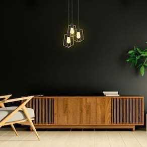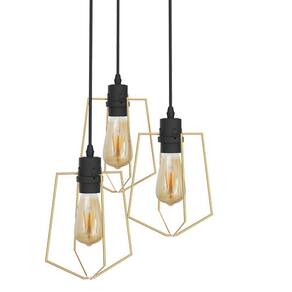 Lustre Pendente Taschibra Aramado Trapeze Dourado Triplo 3xE27 Bivolt
