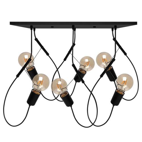 Lustre Pendente Taschibra Bungee Preto 6XE27 Bivolt Características Gerais do Produto: Benefícios do produto: Produzido Nacional Dimensões AxLxP CM : 130 X 63 X 33 Produzido em: Metal e Componentes Elétricos Voltagem: Autovolt em 110v e 220V Cor acabamento: Preto Potência: 240W Cor do cabo: Preto Potência máxima Por soquete : 40W Ângulo de abertura: 360 Para uso em soquete: E27 Tradicional Comprimento do cabo: 1.30 metros, altura regulável : 1 ano junto ao fabricante Aplicação: Teto Acompanha lâmpada: Não Grau de proteção: IP20 Número de lâmpadas: 6 Acompanha o produto: 01 Pendente Completo 01 Kit Instalação : 1 ano junto ao fabricante Marca: Não Informado