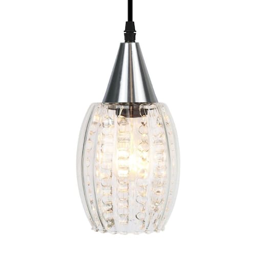 Lustre Pendente Taschibra Cristal Badih P Canelado E27 Transparente Bivolt Prata Características Gerais do Produto: Benefícios do produto: Produzido artesanalmente com a técnica design de sopro italiano, excelente espessura. Peça exclusiva, cada vidro tem seu desenho próprio, soquete em aço escova com cores premium Dimensões AxLxP CM : 27 X 17 Formato: Oval Produzido em: Metal, Vidro e Componentes Elétricos Voltagem: Bivolt Utilizado em 110V e 220V Alimentação: Energia elétrica Cor acabamento: Transparente Claro Potência: 40W Cor do cabo: Preto Potência máxima Por soquete : 40W Ângulo de abertura: 300 Para uso em soquete: E27 Tradicional Comprimento do cabo: 1 metro, altura regulável : 90 dias junto ao fabricante Aplicação: Teto Vida útil: Indeterminado Acompanha lâmpada: Não Grau de proteção: IP20 Número de lâmpadas: 1 Acompanha o produto: 01 Lustre Completo 01 Kit Instalação 01 Manual de Instalação : 90 dias