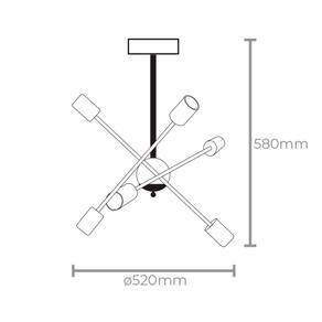 Lustre Pendente Taschibra Gravit E27 Bivolt Preto Dimensões AxLxP (mm): 580x520x520 Voltagem: Bivolt Garantia: 90 dias junto ao fornecedor Cor: Preto Comprimento dos Cabos: 1,40m Local de Uso: Interno Lâmpada Inclusa: Não Número de Lâmpadas: 6 Material: Metal e Plástico Soquete: E27 Potência Máxima por Soquete: 40W Referência: 15050916 Preto Itens Inclusos 1 Lustre Pendente Manual de Instalação