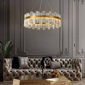 Lustre Pendente Teto 130cm x 57cm LED 3 Cores 128 Cristais Redondo Gimpo KJDD-L-392-60CM Lustre Pendente 130cm x 57cm LED 128 Cristais 3 Cores Gimpo KJDD-L-392-60CM. Estrutura Aço. Cristais customizáveis. Regulagem de Altura do Teto. LED Multitemperatura 3 Cores 3x1 . Potência 80 Watts. Bivolt. Branco quente 3000k, branco neutro 4500k e branco frio 6000k. Transforme seu ambiente com elegância e sofisticação com o Lustre Pendente Luminária de Teto Gimpo KJDD-L-392-60CM. A escolha perfeita para iluminar e modernizar com muito requinte. Combina materiais de alta qualidade e garante uma iluminação deslumbrante e encantadora. Uma obra prima luminosa formada por 128 cristais, pela solidez do aço e pela pintura eletrostática metálica resistente à corrosão, calor e ao tempo. O cristal utilizado neste pendente é uma fonte de brilho e transparência que fascina. E o mais incrível: é possível ajustar e variar a altura dos cristais na estrutura da luminária, para criar diferentes arranjos e configurações Podem ser dispostos todos linearmente, ou deixar os cristais internos mais baixos que os de fora, ou zigue-zague, formação serra, padrão onda, e muito mais A criação é livre. Sem contar que os cristais são um luxo à parte. Criam reflexos e padrões que preenchem com uma aura de beleza e magia. Simplesmente refinado e impactante. A estrutura metálica redonda possui 57cm de diâmetro, e é sustentada por 3 cabos de aço prateados com 110m de extensão, além de contar com cabo elétrico de mesma medida, transparente. O lustre totalmente montado alcança 130cm de altura em relação ao teto, a qual pode ser facilmente ajustada, conforme necessidade da instalação. Já vem com LED multitemperatura de 80 Watts instalado, pronto para uso, com 3 intensidades de cores: branco quente 3000K , branco neutro 4500K e branco frio 6000K . A seleção das luzes é feita através do . Ao acender e apagar a luz liga / desliga é possível alternar entre os três tons de luz. Isto faz com que a cor do LED seja alterada, uma cor após a outra. Deste modo, controla-se a luminosidade e também a potência de Watts que é enviada para o LED, além da atmosfera certa, a qualquer momento, para refletir as mais diferentes emoções. É compatível com tensão Bivolt, o que permite ligar em 110v e em 220v. Luminárias Gimpo. Elementos de beleza que transformam decorações. Especificações: 1 Luminária 130 x 57cm diâmetro 128 Cristais Gimpo KJDD-L-392-60CM. Material: aço e cristal. Medidas montada: 130cm altura x 57cm diâmetro pode variar conforme montagem dos cristais . Medida da estrutura: 57cm diâmetro x 4 cm altura. Base canpola : 15cm diâmetro x 4cm altura, sobrepor. Diâmetro estrutura externa: 57cm. Diâmetro estrutura interna: 44,5cm. Altura lateral da estrutura: 4cm. Quantidade total: 128 cristais. Medida do cristal: 20cm altura x 2cm largura x 0,8cm espessura. Cabo de aço de sustentação: 110cm, 3 peças, reguláveis, prateados. Fiação elétrica: 110cm, regulável, transparente. LED driver 3 cores multitemperatura: 80 Watts. Fiação já instalada no driver. Voltagem: 110v / 220v Bivolt . Ligação: corrente elétrica. Acompanha kit parafusos, buchas, arruelas e travessa. Necessita montagem: no teto. Peso total: 9,1kg. Medidas da caixa: 65 x 65 x 17cm. : 3 Meses. Modelo: KJDD-L-392-60CM. EAN: 7898680305620. Marca: Gimpo.