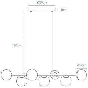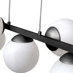 Lustre pendente trilho bubble c/7 globos Especificações Técnicas: - Sua estrutura retangular comporta tensão Bivolt. - Utiliza 7 Halopin - Coloração Preto polido. - Estrutura fabricado em alumínio reforçado. - Globos fabricados em vidro. - Fios de sustentação cristal invisível. - Altura regulável. - Altura máxima 150 cm. - Tamanho do globo 15 cm. - Tamanho da base de sustentação 30 cm atenção, esse tamanho se refere a fixação no teto - Modelo Jabuticaba com design inovador.