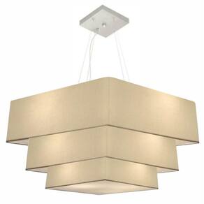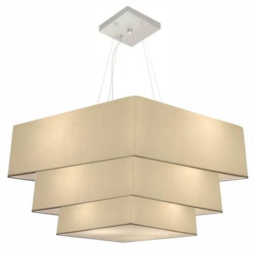 Pendente Triplo Quadrado Moderno Indicado para decoração de Mesa de Jantar, Sala, Sala de Estar, Sala de Jantar, Suíte, Quartos, Mezanino, Corredor, Balcão, Lojas, Comércios, Sala com Cozinha integrados, Bares e Restaurante, Sala de Tv.DimensãoCúpula em Tecido: 30x80x70x60cm