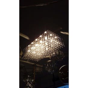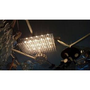 Lustre Retangular com base base em metal cromado e cristais transparentes. Capacidade para 15 lâmpadas g9(Não acompanham).