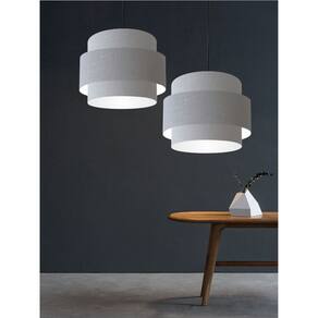 Lustre Sala de Jantar Com Desvio Vivare Md-4401 Cúpula em Tecido 60cm - Cor: Rustico-cinza | Voltagem: 127/220V