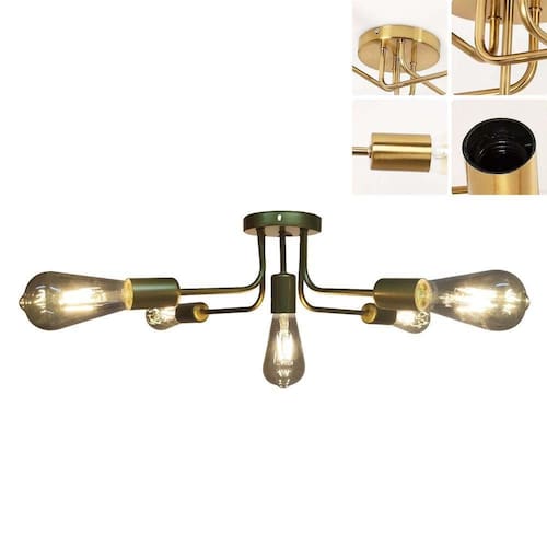 O lustre utiliza 5 lâmpadas E27.