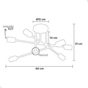 O Plafon Hashteg possui uma iluminação com grande amplitude devido suas 6 lâmpadas não inclusas , e é ideal para decorar ambientes nas quais elas sejam o centro das atenções, suas hastes são articuláveis podendo formar alguns designs diferentes. Soquete: E27Quantidade de lâmpadas: 6 não inclusas Cores: Dourado Material: MetalTensão: BivoltDimensões: 21x60 cm Marca: Lucce Luz Iluminação