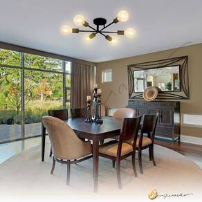 Lustre Sputnik Moderno Para Sala De Jantar Preto Hashteg 6Xe27 Soquete: E27 Quantidade de lâmpadas: 6 não inclusas Cores: Preto Material: Metal Tensão: Bivolt Dimensões: 21x60 cm Marca: Não Informado Ean: 7893248800777