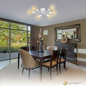 O Plafon Hashteg possui uma iluminação com grande amplitude devido suas 6 lâmpadas não inclusas , e é ideal para decorar ambientes nas quais elas sejam o centro das atenções, suas hastes são articuláveis podendo formar alguns designs diferentes.