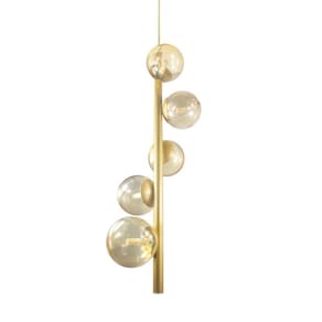 A linha de luminárias modelo tem um ar contemporâneo, um estilo moderno, minimalista e ao mesmo tempo. Os pendentes podem ser colocadas em quartos, salas de jantar ou estar e as arandelas indicamos para lounges, salas, dormitórios ou até mesmo em lavabos. Com Design simples trazem classe e estilo a qualquer ambiente. Todos luminárias da linha são produzidas em alumínio com esferas de vidro. Descrição Técnica: - Modelo: Lustre Pendente com 5 Globos de Vidro - Acabamento: - Tamanho dos Globos de Vidro: 120mm - Quantidade de Globos de Vidro e soquetes: 5 - Material: Globo em Vidro e Hastes em Alumínio - Tamanho Aproximado (LxAxP) com os Globos de Vidro: 100 cm X 20 cm X 20 cm - Cabo: Cabo Revestido em Tecido - 70cm - Soquete: Padrão G9 - Bivolt: Sim