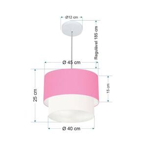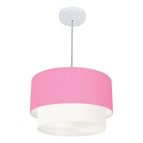Lustres Pendentes Duplo Cilíndrico Vivare Md-4350 Cúpula Em Tecido 45x40cm - Bivolt Rosa-bebê-branco 127/220v