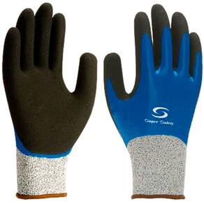 A Luva 1014 Reforçada da Super Safety é confeccionada em fios de fibra de vidro e HPPE (polietileno de alta performance) e recebe banho duplo de borracha nitrílica na palma, dorso e pontas dos dedos. O punho elástico e o formato anatômico garantem ajuste firme e conforto durante o uso prolongado.