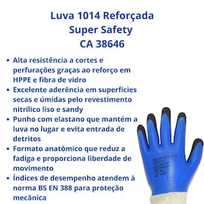 Luva 1014 Reforçada Super Safety CA 38646 A combinação ideal de proteção contra cortes e aderência em ambientes exigentes