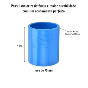 Utilizada na maioria dos sistemas permanentes de irrigação com a função de unir dois tubos ou conexões. A luva possui dois lados bolsa para o encaixe.