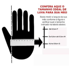Reforço na palma com material emborrachado que proporciona ótima pegada e conforto. Confeccionada em neoprene, reforço na palma emborrachado, ajustável com fecho de contato, costura reforçada com linha de nylon.