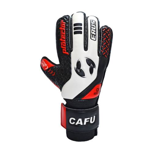 Luva de arqueiro CAFU de alta qualidade e durabilidade com proteção não removível para os dedos (tala) para maior proteção. Projetado para goleiros que buscam boa aderência e conforto. Fechamento: pulseira elástica de fecho aderente com espaço para personalizar\ nCor: preto\ nCorpo: MallaOrigem: Paquistão Palma: látex de 3,5 mm\ nProteção: férula fixada nas duas\ nTamanho: 10