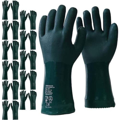 Características técnicasO uso da Luva Carboflex PVC Palma Áspera 46cm CARBOGRAFITE traz uma série de vantagens para profissionais que necessitam de segurança aliada ao conforto: