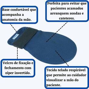Contém somente 1 luva, podendo ser utilizada tanto na mão direita, quanto na esquerda. Para pessoas que precisam de contenção em ambas as mãos é necessária a aquisição de 2 luvas.