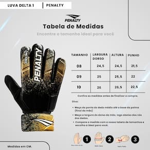 A Luva de Goleiro certa faz toda a diferença para você treinar suas habilidades. A Luva de Goleiro Penalty Delta 1. O modelo foi construído para proporcionar conforto, segurança e resistência durante as partidas. Os punhos das luvas de goleiro contam com tiras autocolantes ajustáveis, auxiliando na prevenção de lesões durante o contato com a bola.